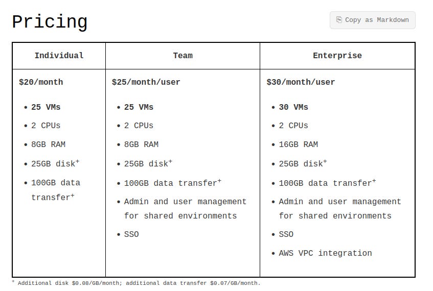 Funnily, one reader posted this recently, about a different service with a similar value proposal: https://lewoudar.substack.com/p/lets-talk-about-flyio-sprites-aka